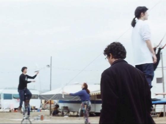 rides a short unicycle, both seen twice. Just after this, we see two