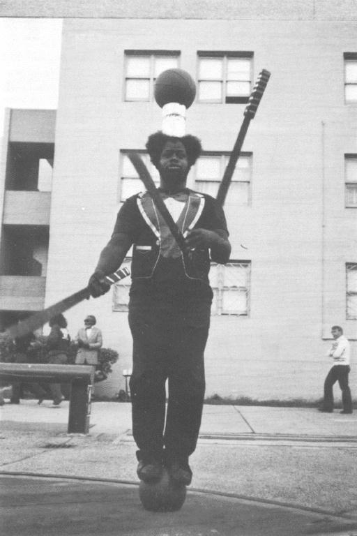 The Oakland Coliseum held auditions for half-time entertainment for the Warriors games. He wowed them juggling four basketballs while riding his unicycle around the court and shooting trick shots. "Hey, I had no problem getting that job. People are used to seeing blacks with basketballs. They think we're all related to the Harlem Globetrotters!" They signed him up to do 12 games this season.
