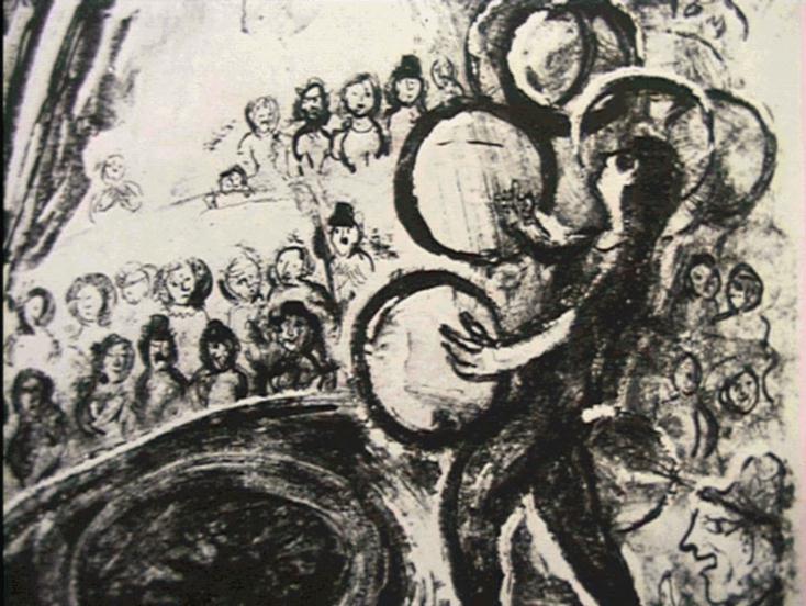 Close-up of the juggler from the above Marc Chagall lithograph.