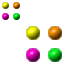 More little balls, in yellow, orange, pink, and green.