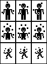 Three sets of three little pictures of juggling men, suitable for really poor animation. Yes, they're silly, but they're free.